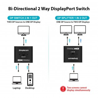 Simplecom CM202 Bi-Directional 2 Way DisplayPort Switch Selector DP 1.4 8K