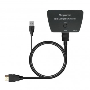 Simplecom CM312 HDMI 2.0 1x2 Splitter 1 In 2 Out 4K@60Hz UHD 3D 2 Port HDMI Duplicator