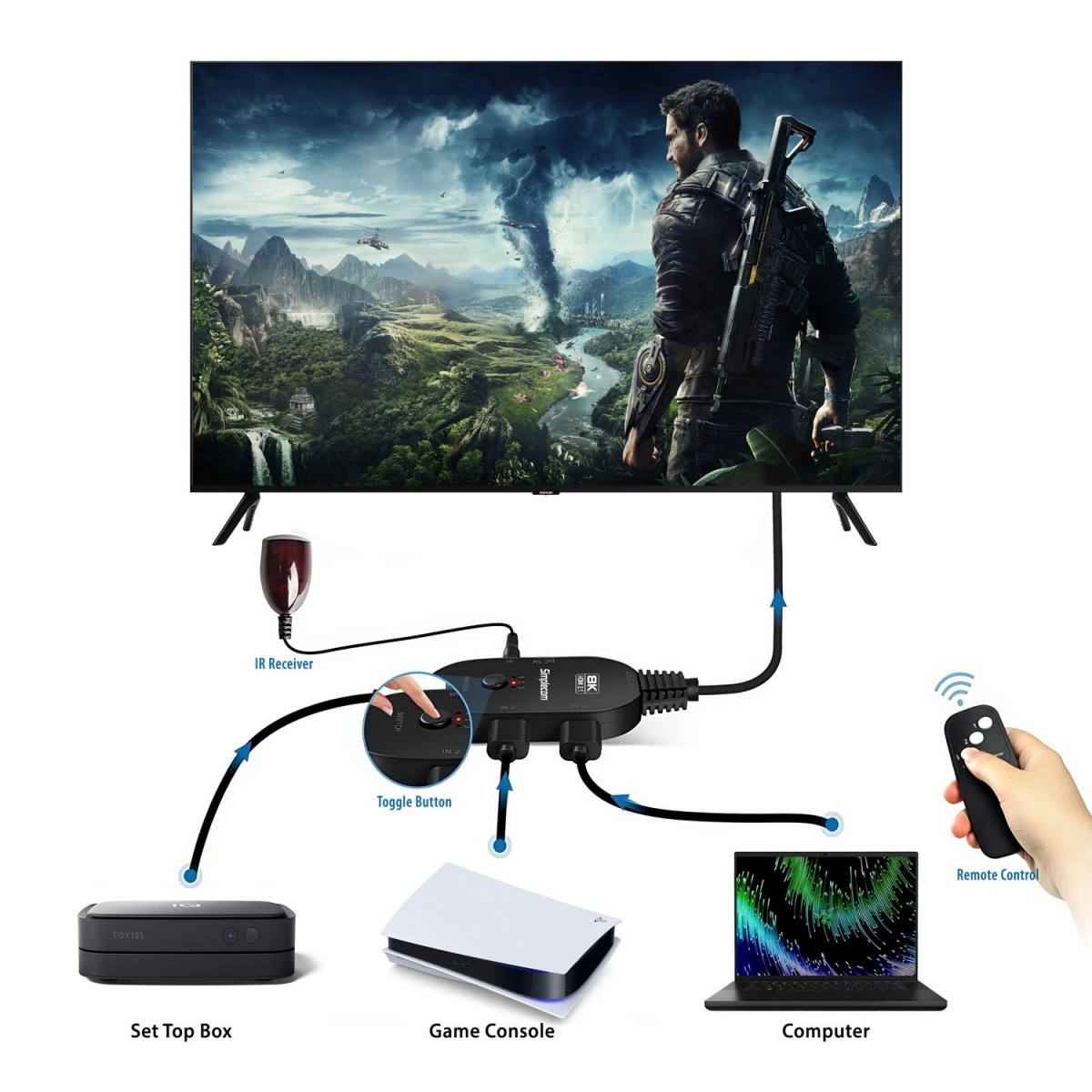 Simplecom CM353 3-Port HDMI 2.1 Switch 3 IN 1 OUT Splitter HDCP 2.3 8K@60Hz