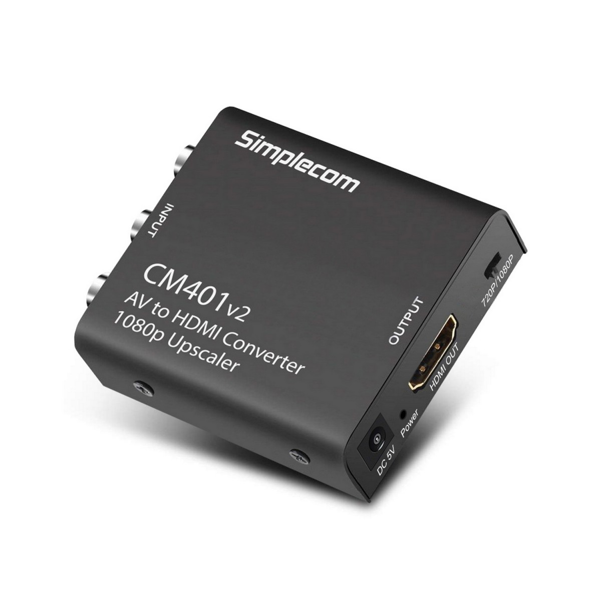 Simplecom CM401v2 Composite AV CVBS 3RCA to HDMI Video Converter 1080p Upscaler Alloy Case