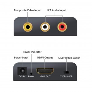 Simply plug standard AV cables (yellow, red, and white) into the input port of the converter, and then connect an HDMI cable from output to your TV. It works great with either 720p or 1080p TVs, and the output mode is easily selectable with a switch on the device. This converter's advanced analog to digital processor allowing you to get the clearest picture quality possible without losing detail. Both video and audio are integrated into the HDMI output, providing an all-digital signal to you HDTV.