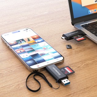 This dual-slot card reader is designed to provide fast and convenient access to both SD and MicroSD memory cards. Featuring both USB-A and USB-C interfaces, it easily connects to PCs, laptops, and compatible mobile devices without the need for adapters.